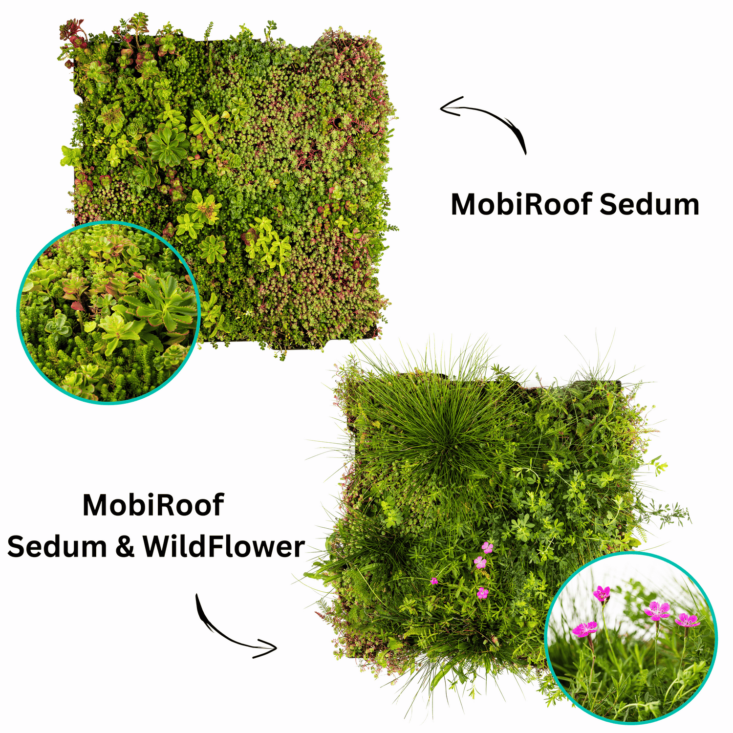MobiRoof - Sedum & WildFlower combines sedum with a variety of wildflowers, flowering herbs and ornamental grasses (20-24 species) for a beautiful green roof.